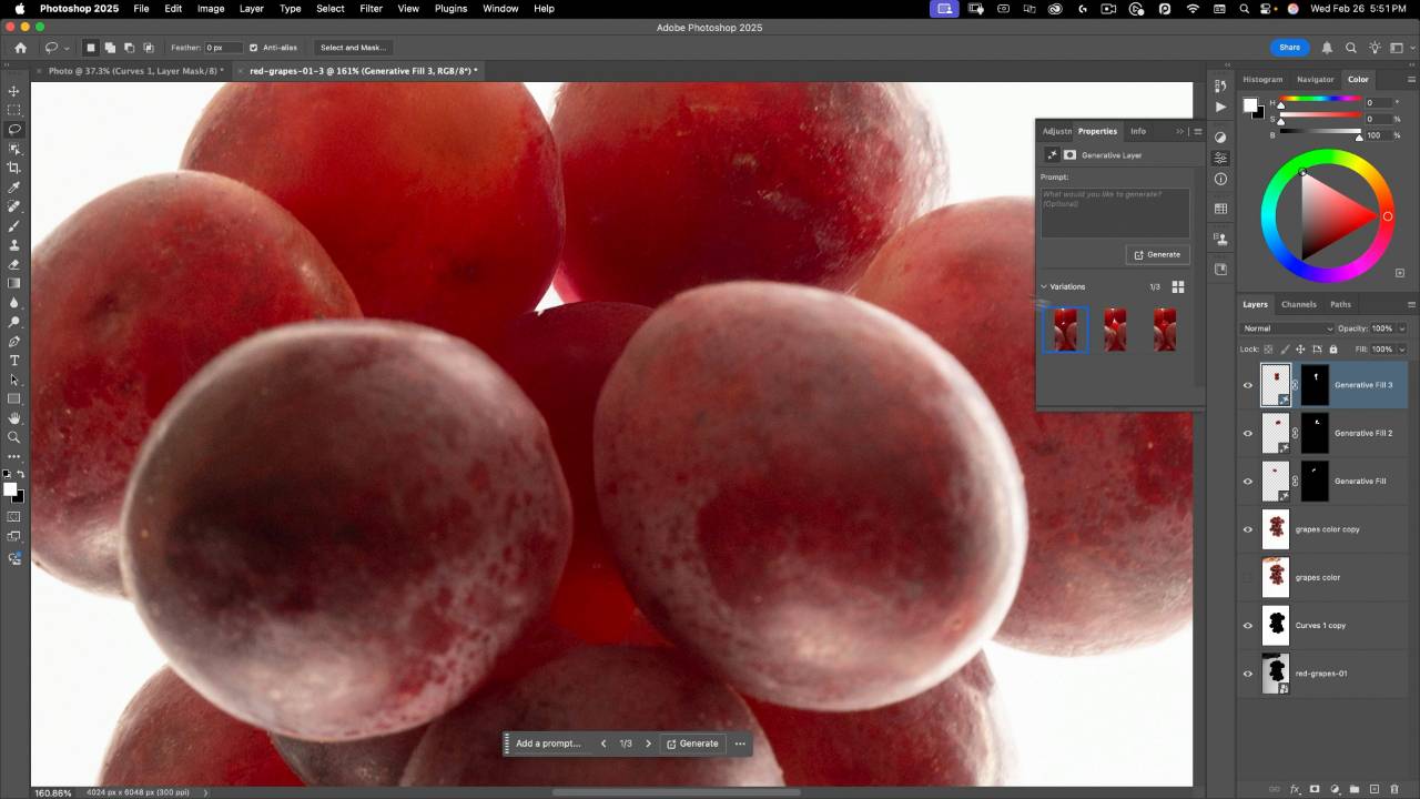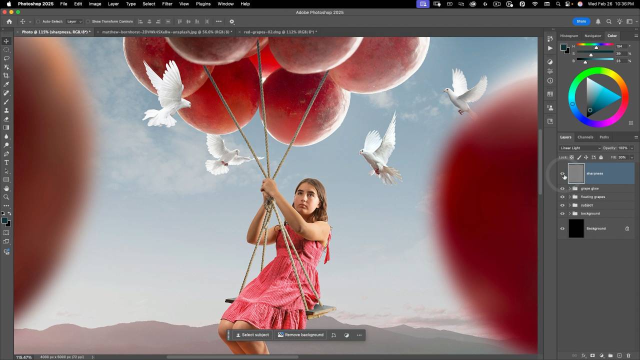 From Generative Fill for cleaning up backgrounds to AI-assisted selections that speed up precise cutouts, you’ll see how these tools free you up to focus on creative decisions — like how your floating grape balloons interact with the light, or how shadows help anchor your subject in the scene.