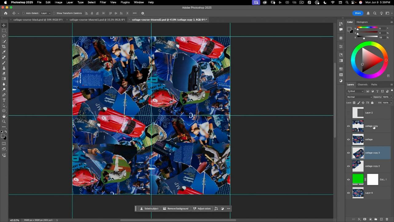 Refine your masking and color control using Quick Mask, Magic Wand, and Camera RAW's Point Color. You’ll build a second seamless pattern from your collage, fully prepped for stylized compositing.